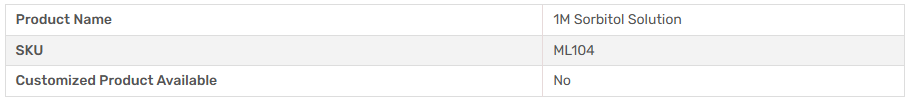 1M Sorbitol Solution has a wide range of application in biology. It is used for washing spheroplasts for yeast DNA/RNA extraction and in isoelectric focusing to minimize endoosmotic flow in agarose gels. It is also used to induce osmotic stress.